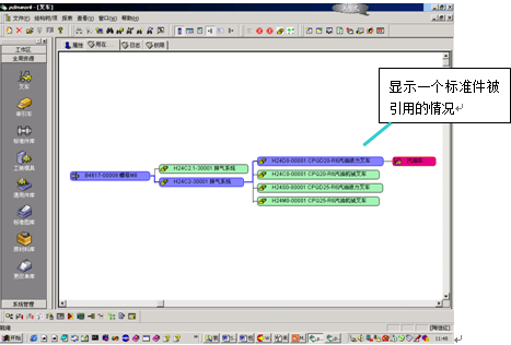 Javelin在完成引用操作后,自動(dòng)和被引用的零部件進(jìn)行關(guān)聯(lián)。并提供Where used功能,能非??焖俚叵蛴脩粽f明該零部件被什么包裝器具(或其它零部件引用)。