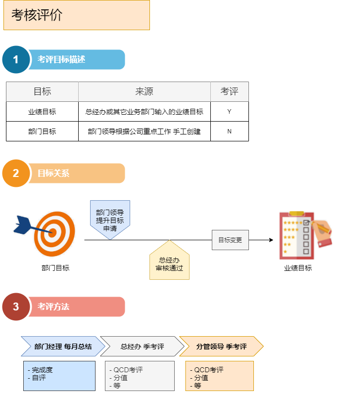 • 若是業(yè)績目標(biāo)或重點工作交辦分解到部門,這些目標(biāo)就必須考核
