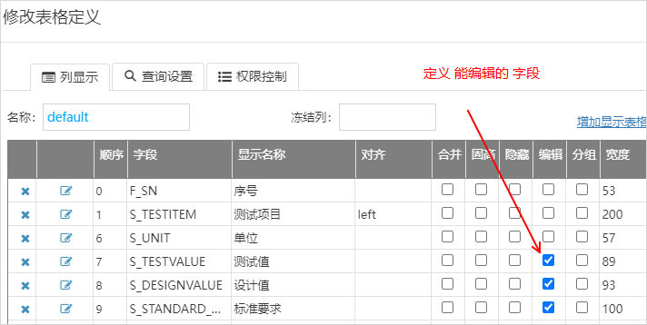2)這個(gè)grid樣式中,需要定義,那些字段可以編輯