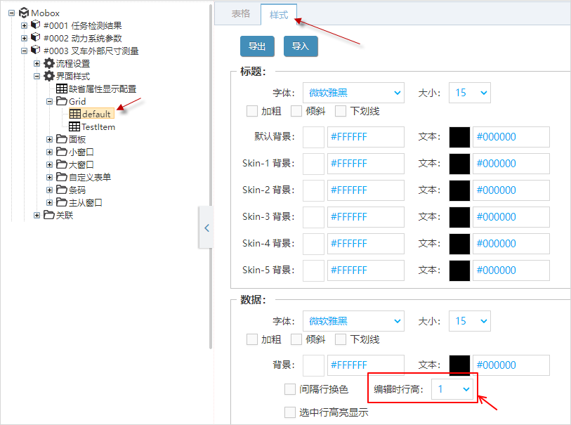 5)格子編輯時(shí)的高度,可以在樣式里面定義