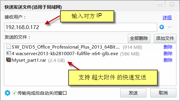 5、提供局域網(wǎng)內(nèi)點(diǎn)對(duì)點(diǎn)文件傳輸功能(也可以用于共享文件)