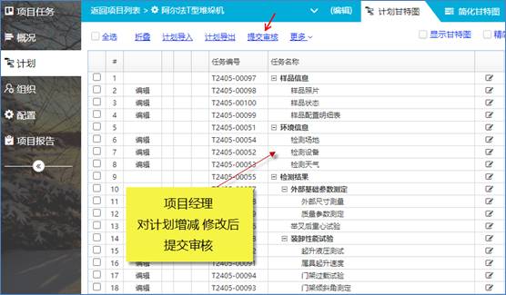 項(xiàng)目經(jīng)理,進(jìn)入項(xiàng)目后,對(duì)計(jì)劃還可以做進(jìn)一步微調(diào),確定后,提交審核。項(xiàng)目計(jì)劃審核一旦通過(guò)。系統(tǒng)根據(jù)計(jì)劃任務(wù)的開(kāi)始日期自動(dòng)創(chuàng)建任務(wù)分發(fā)給相關(guān)測(cè)試人員。